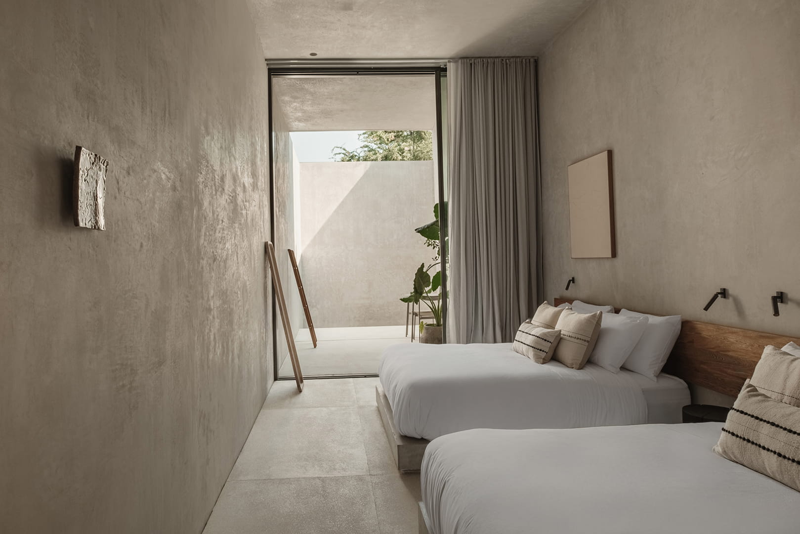 Diseñada para hasta cuatro personas, con dos camas queen. Un ambiente amplio y contemporáneo donde cada detalle prioriza confort, serenidad y una estancia relajada.